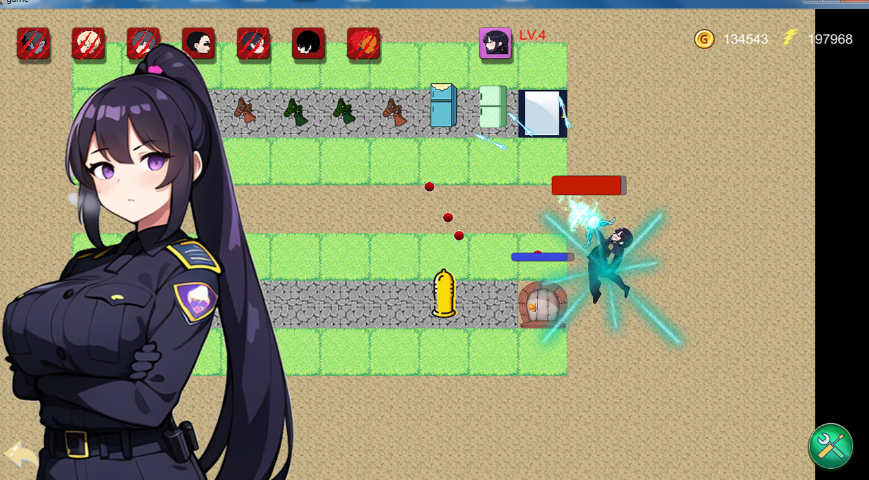 这是一款18禁的塔防类游戏。你将扮演的是一位在逃的囚犯,通过在空地建造防御设施,搭配合理的经济系统,最终战胜前来追捕你的女警官。